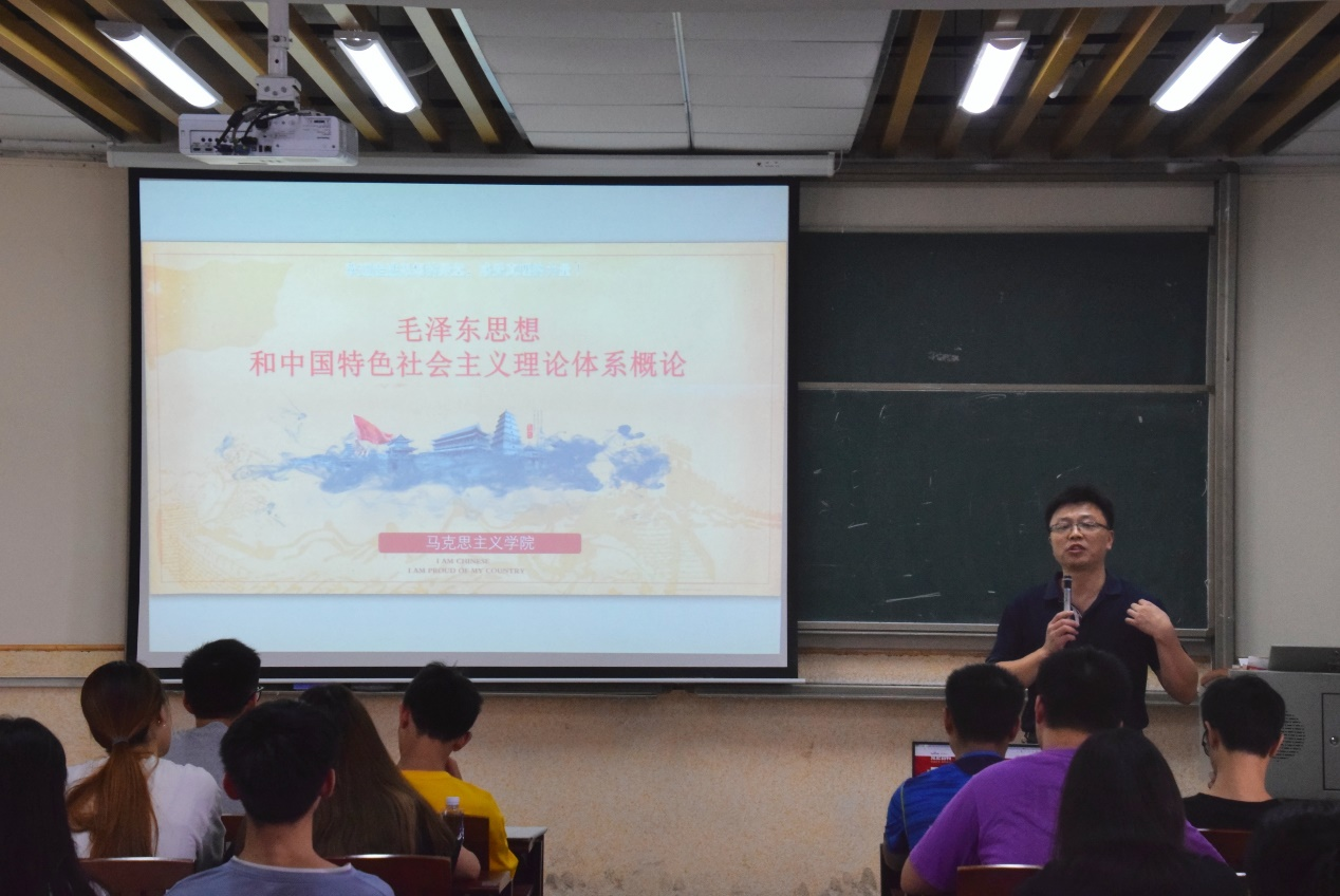 院长陈伟于莞城校区五号楼301为20级学生带来了以“毛泽东思想和中国特色社会主义理论体系概论--学制度,颂党恩”为主题的思政第一课。