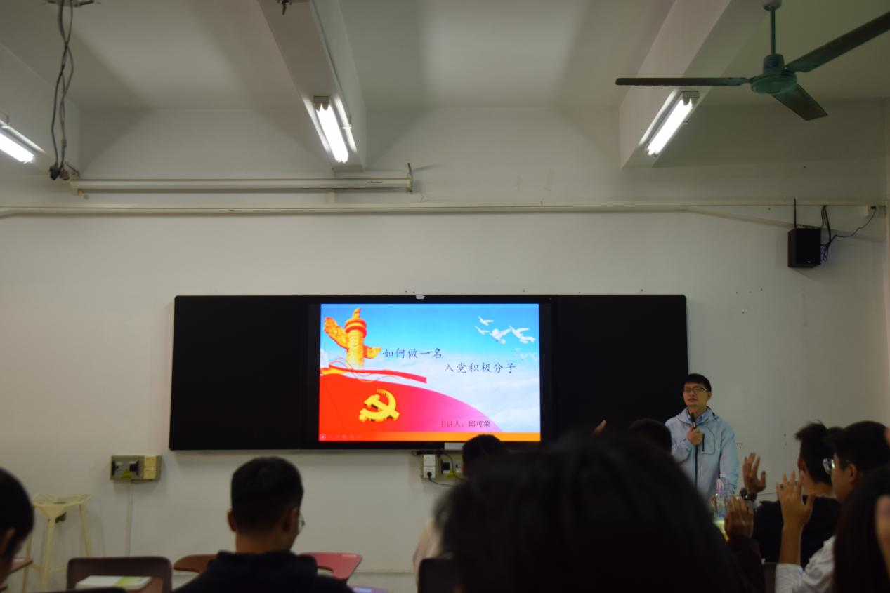 分党校在莞城校区机电楼312教室举行第12期入党积极分子培训班第三讲。此次党课由学院辅导员邱可荣主讲,第12期全体入党积极分子参加。