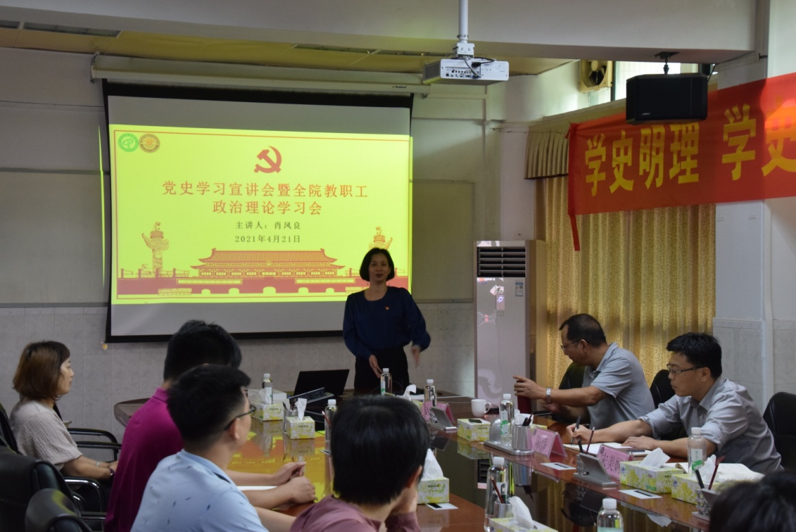 直属党支部在学院302会议室召开了党史学习宣讲会暨教职工政治理论学习会。会议由直属党支部书记宋美娴主持,学校马克思主义学院肖凤良教授作专题宣讲,学院教职工参加了会议。
