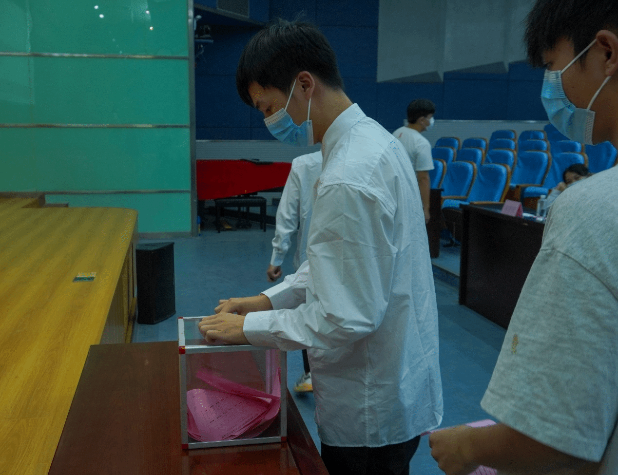 随后,第七届学生会主席团成员翟恒毅向大会汇报工作,回顾了一年以来工作的成果与遭遇的挑战。他表示过去的一年里虽然面对疫情压力,团学依旧推进了新闻媒体中心成立,并在发挥思想引领作用,打造优质志愿服务,参与创新创业竞赛等多个方面取得了可喜长足的发展。在线上教学阶段,团学克服了种种困难,创新工作方式,成功举办了多项线上活动,体现了全体人员的工作热情。主席团成员张凌霄就学生会及各系部学生活动资金使用情况作财务汇报。他指出目前团学收支基本达到平衡状况甚至尚有盈余,离不开外联部的努力及广大同学的配合。会议第八项议程由学院团委书记陈伟鹏宣读院团委新任学生副书记任免。团委新任学生常务副书记张子怡、新任学生副书记梁旦上台发表了任职展望。随后会议开展第八届学生会主席团成员及学生会委员会选举。