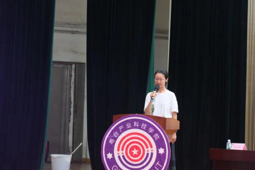 仪式第四项,国家奖学金获得者2021级计算机科学与技术(多媒体设计)专业的梁雨琳同学作为在校生代表发言,她代表学院全体在校生欢迎新同学的到来,鼓励大家积极将个人发展融入党和国家、中华民族的伟大复兴新征程中,在大学生涯中做好合理规划,确定专业学习奋斗目标,将专业学习与创业创业高度融合,勇于在团委学生会、学生社区等组织中全面锻炼自己。