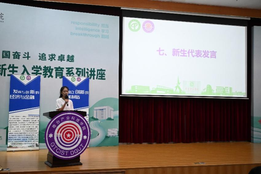 这个不一样的平台,实现不一样的精彩。校友代表,校友会会长陈金晖为新生送上祝福,祝愿新同学在大学生活中锚定目标,实现理想。新生代表武俊尧表达了对未来的期待。她表示,来到莞工,来到粤台,将通过自己的努力,积极向老师和同学学习,使自己不断提升。