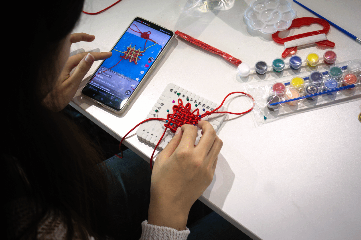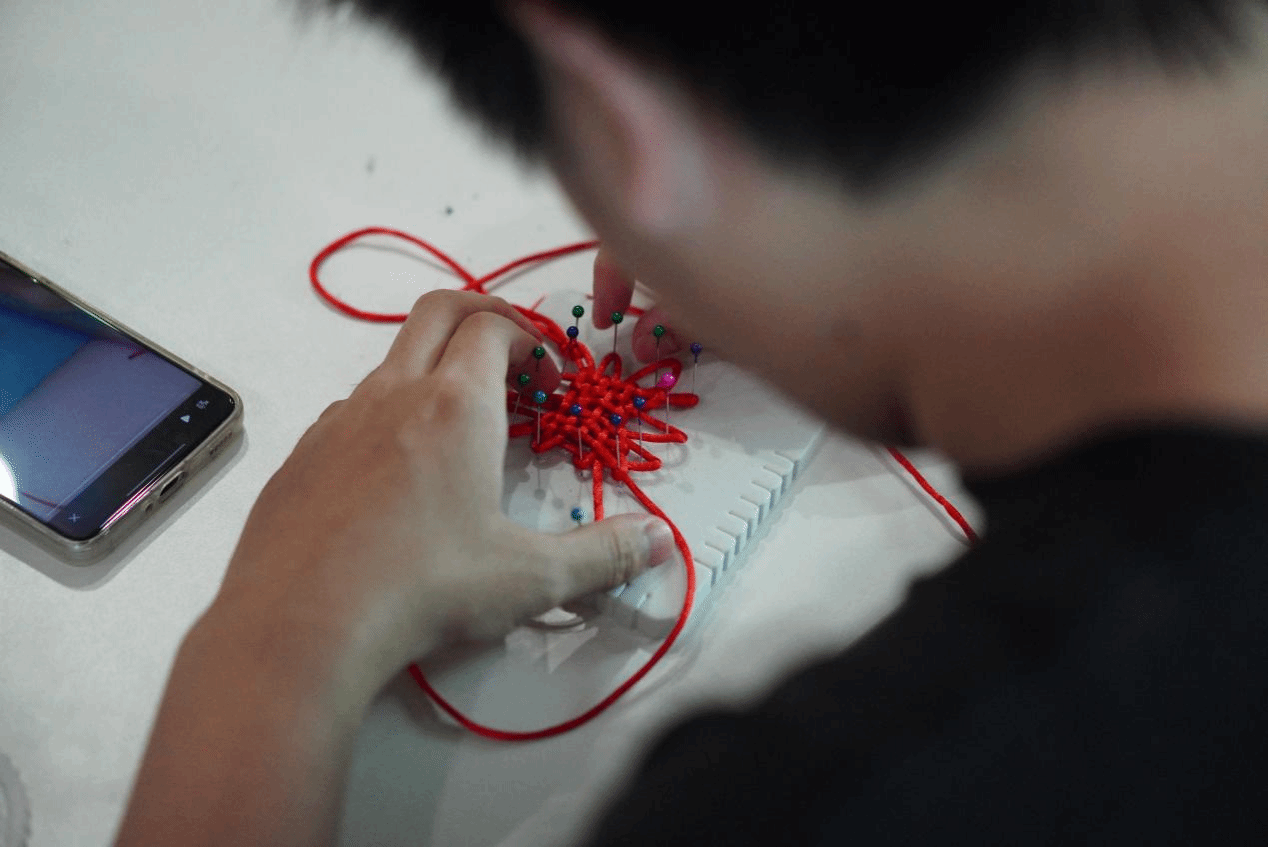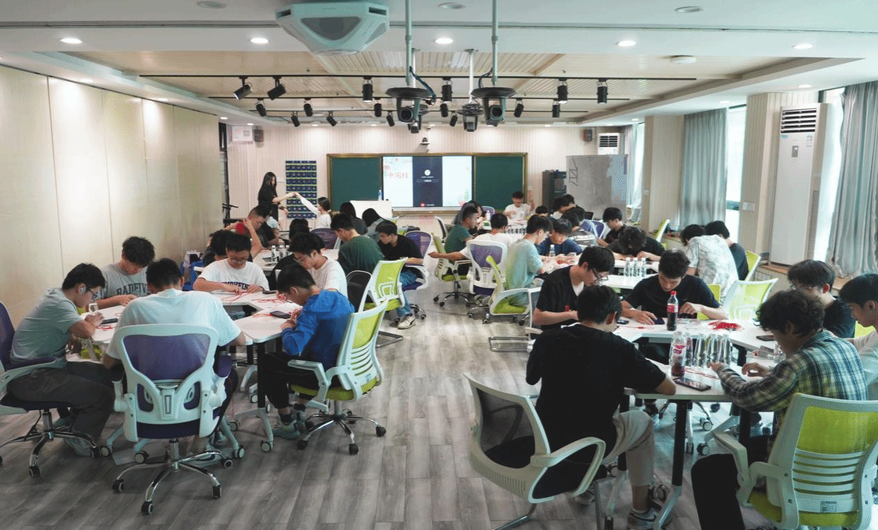 活动伊始,“结”艺传承环节便吸引了众多同学的目光。在视频教学的指导下,同学们全神贯注地尝试编织中国结。尽管编织过程复杂,但在同学们的专注努力下,一根根丝线相互交织,不一会儿,一个个精美的中国结便在同学们的手中诞生。大家一边编织,一边交流心得,分享着传统文化带来的乐趣,现场洋溢着浓厚的文化氛围与温馨情谊。这一环节不仅让同学们感受到了传统文化的魅力,也增进了同学们之间的交流与合作。