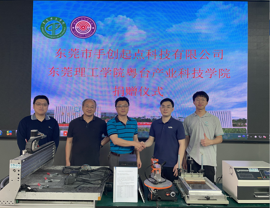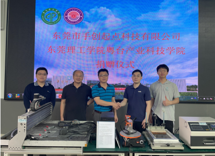 近日,原2016级工业设计系1班校友、手创起点教育公司董事长陈金晖重返学院,向学院捐赠设备一批,总价值近50000元。happy漫画 院长陈伟、教务长黄灯奎、教务办主任陈尚彦、智能制造系主任吕杰融出席捐赠仪式。