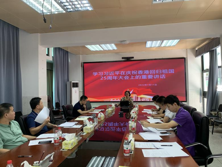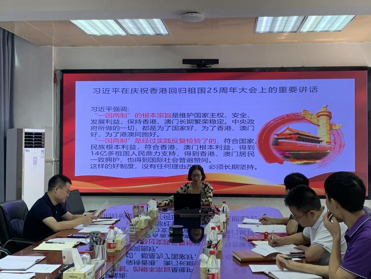 理论学习中心组学习会,学习习近平总书记在庆祝香港回归祖国25周年大会暨香港特别行政区第六届政府就职典礼上的重要讲话。院长陈伟、副书记兼副院长谢春晓、副院长李奇及中心组成员参加会议。
