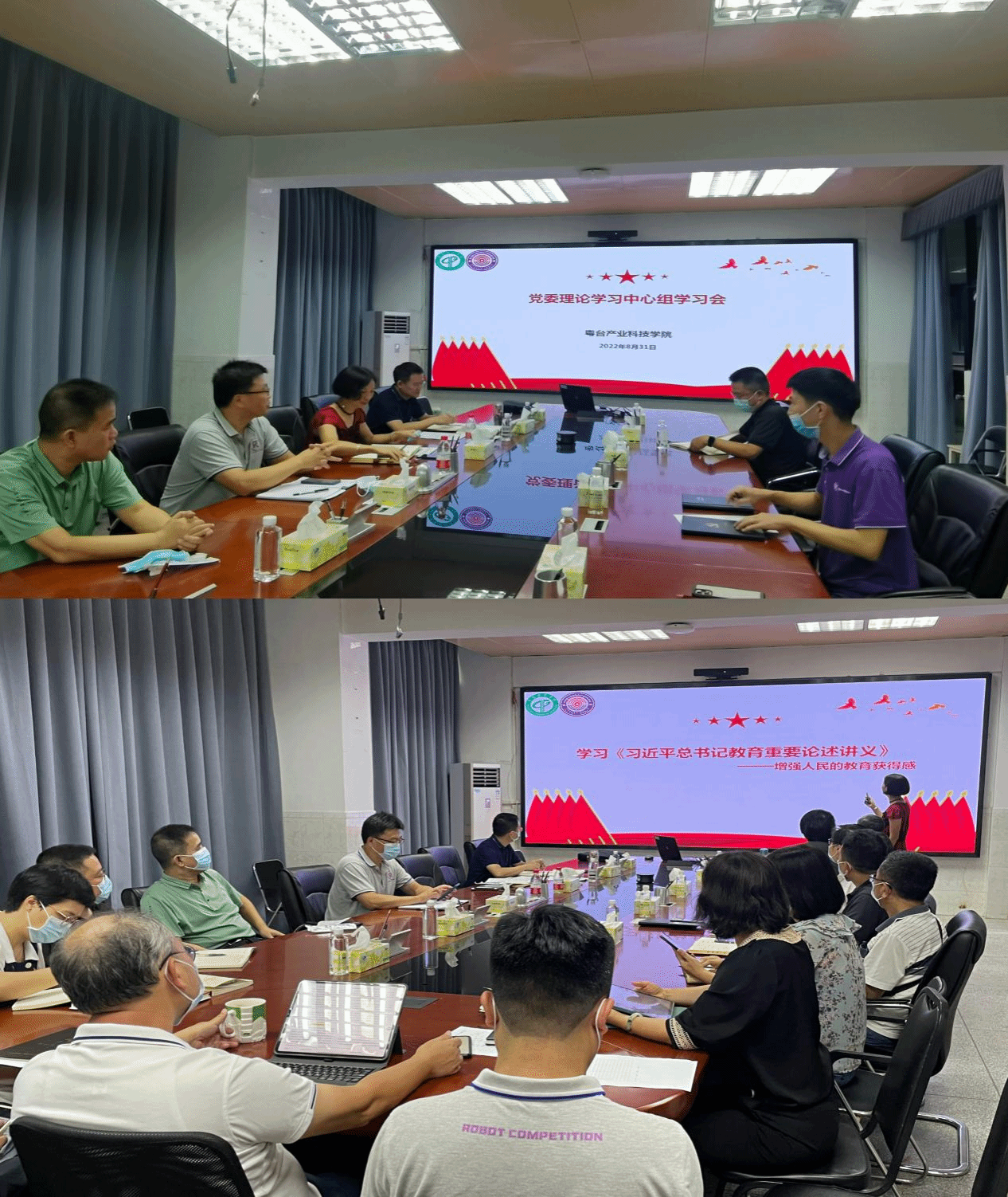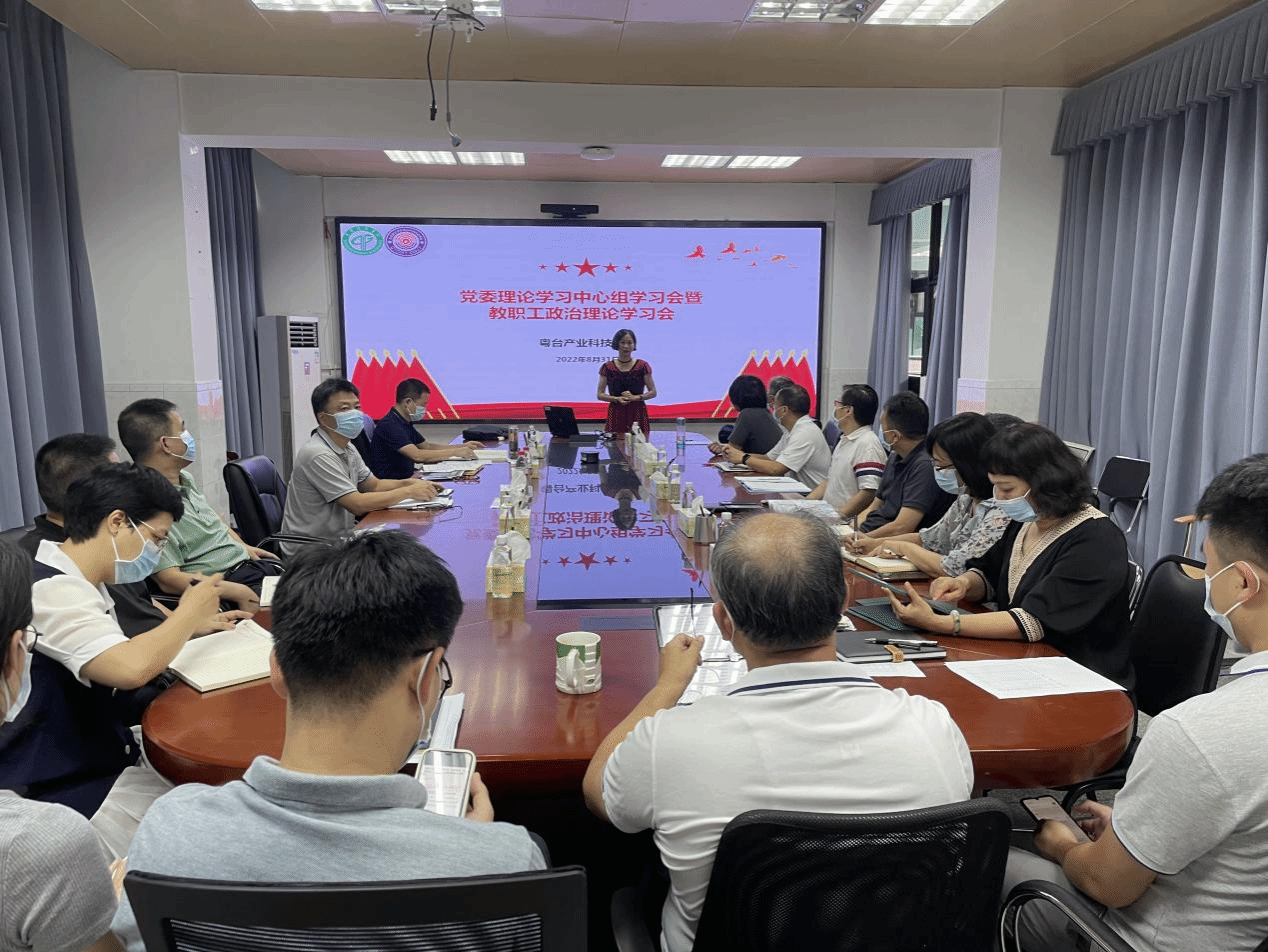 在实验楼302会议室召开学院党委理论学习中心组暨全院教职工政治理论学习会,专题学习《习近平总书记教育重要论述讲义》第六讲增强人民教育的获得感。会议由党委书记宋美娴主持,院长陈伟、副书记兼副院长谢春晓、副院长李奇及全院教职工参加会议。