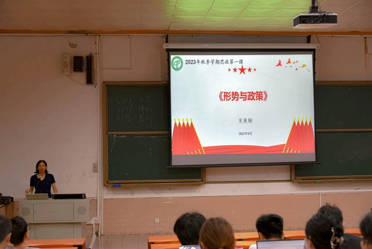 党委书记宋美娴在莞城校区五号阶梯教室为2022智能制造工程1班、2班、2022经济与金融1班、2班共138名同学上《形势与政策》秋季学期思政第一课。