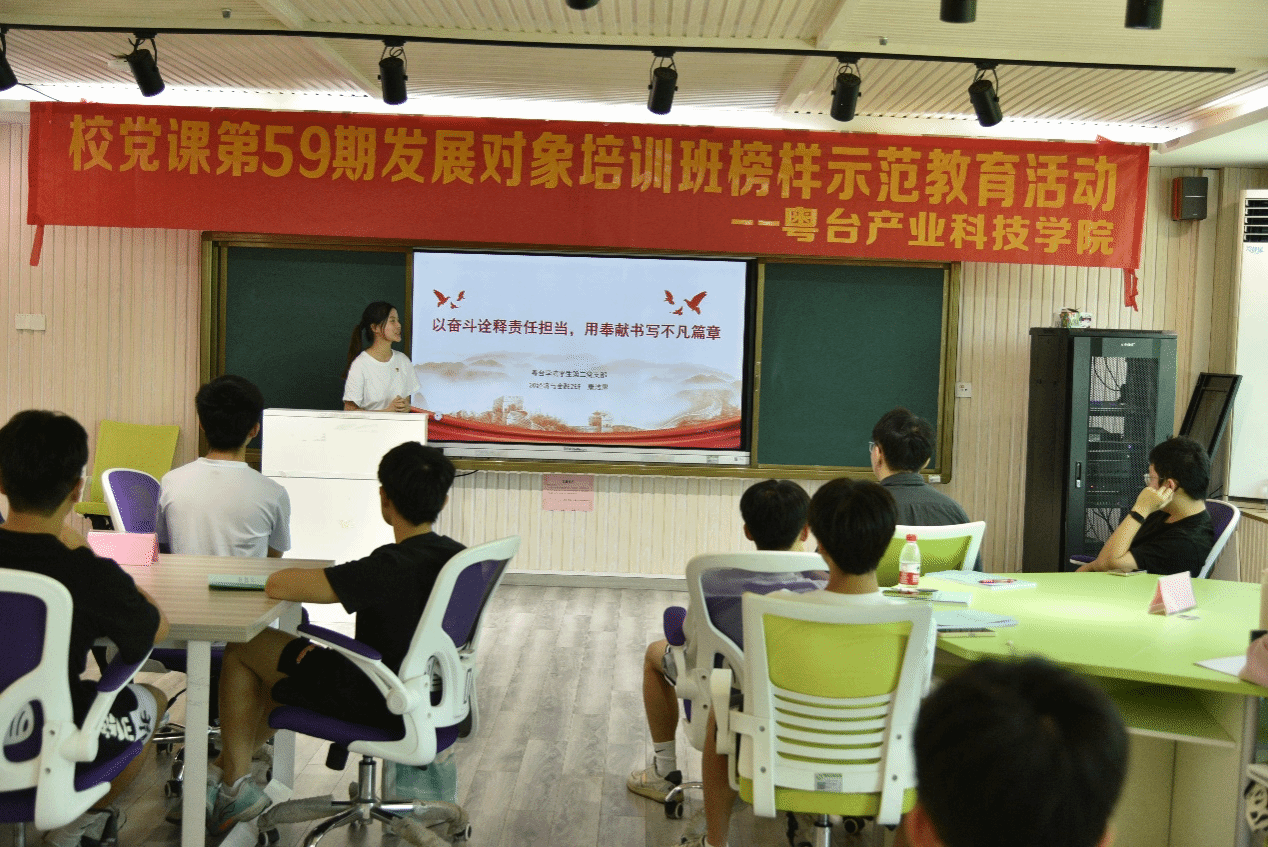 在莞城校区实验楼406智慧教室开展第59期发展对象培训班“榜样示范及理想信念教育活动”。学院邀请了学生党员代表梁雨林、翟恒毅和康洁思进行了分享交流。学院党委负责人丘永辉进行了总结发言,活动由学院组织员袁伴玲主持。