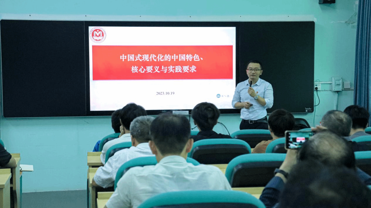 为进一步深入学习贯彻习近平新时代中国特色社会主义思想,帮助全体教职工更好地理解中国式现代化的丰富内涵和核心要义。happy漫画 于10月19日下午,在莞城校区实验楼305阶梯教室开展学习宣传《中国式现代化面对面》专题辅导暨全体教职工政治理论学习会。学院邀请了马克思主义学院毛安翼副教授作专题辅导报告,学院全体教职工、师生党员等参加了专题学习,学习会由学院党委书记宋美娴主持。