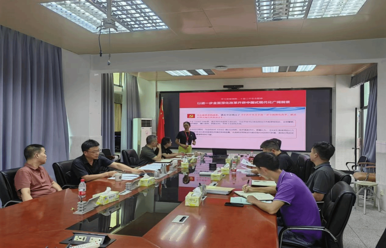 在莞城校区实验楼302会议室召开了党委(扩大)会议,学习习近平总书记在党的二十届三中全会上的重要讲话精神,学习《中共中央关于进一步全面深化改革、推进中国式现代化的决定》精神及全会公报,研究贯彻落实意见。学院中层领导、党委委员及党支部书记等参加了学习,会议由党委书记宋美娴主持。
