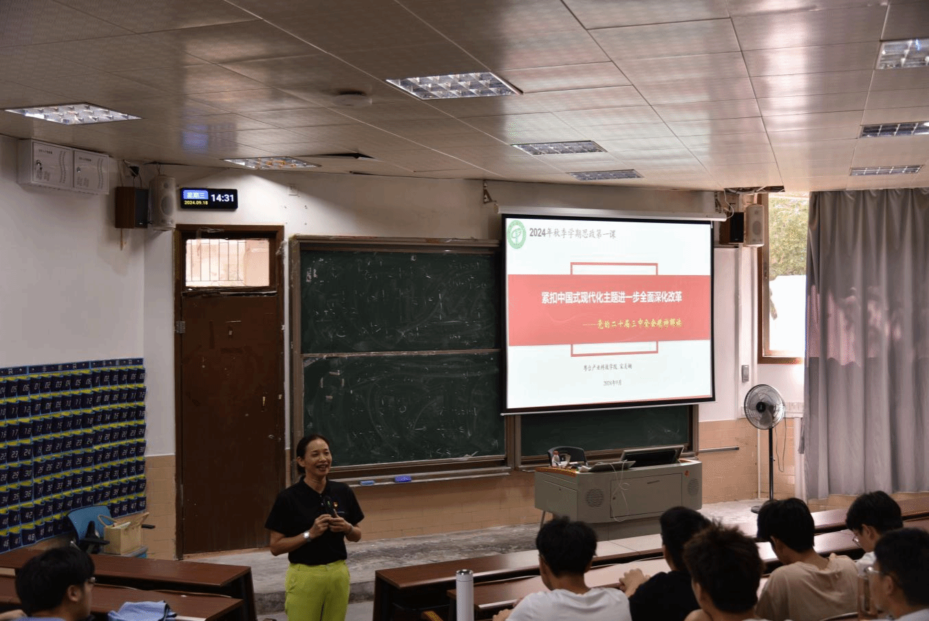 党委书记宋美娴在莞城校区六号楼阶梯教室为2023级(粤台)工业设计1班、电商1-2班和计技1班共136名学生讲授了以《紧扣中国式现代化主题,进一步全面深化改革——党的二十届三中全会精神解读》为题的“思政第一课”。