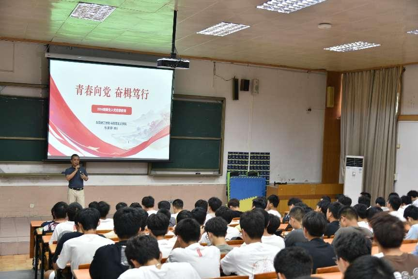 邀请马克思主义学院马冀群博士为2024级全体新生讲授了以《青春向党 奋楫笃行》为题的入党启蒙教育党课,会议由学院党委副书记丘永辉主持。