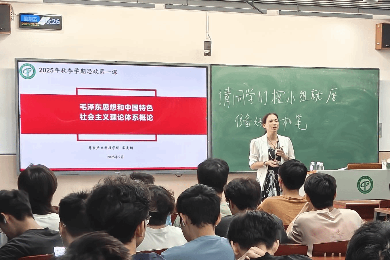 为引导学生加深对毛泽东思想和中国特色社会主义理论的认知,筑牢思想根基。9月26日,happy漫画 党委书记宋美娴在莞城校区1号楼301教室为2024级(粤台)工业设计1班、电商1-2班和计技1班共130名学生上“思政第一课”。