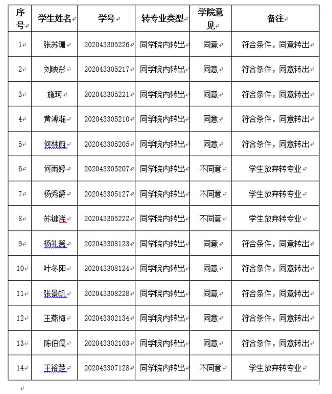 应《关于2020-2021学年第一学期受理学生转专业工作的通知》要求,根据《东莞理工学院本科生转专业实施办法》(莞工〔2015〕47号)及《happy漫画 转专业考核方案》,经学院党政联席会议审批,现将申请转出的学生审批结果公布如下。