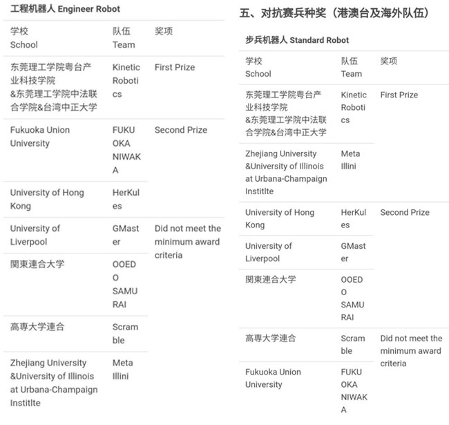 在线上评审中Kinetic战队在对抗赛组别(港澳台及海外)小组中脱颖而出在该组别以总成绩第一名的成绩获得了全国大学生机器人竞赛总决赛一等奖。