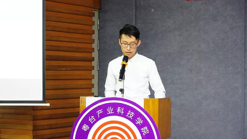 新干事代表余泽浩同学讲述了自己与粤台团委学生会的奇妙结缘,也表达了自己对接下来一年在团委学生会工作的期待,并代表全体团学5.0的同学向领导老师和学长学姐表达了自己对未来工作认真负责的决心。