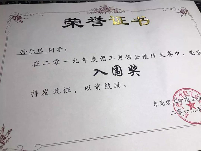 2018级多媒体设计系尹嘉蔚同学的作品“莞工月饼盒”以及2017级工业设计系孙乐琼同学的作品“渐行渐‘圆’”被评为优秀作品。