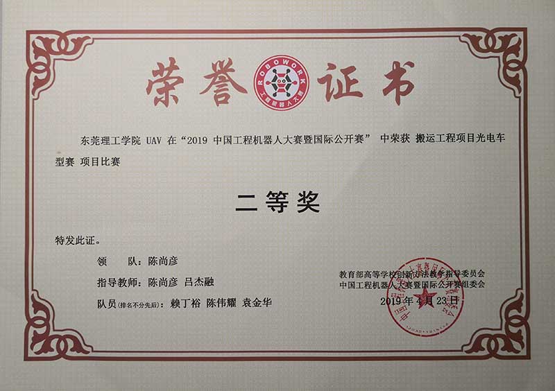 机械系由赖丁裕、电商系袁金华、工设系陈伟耀三位同学组建的UAV团队荣获二等奖。