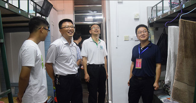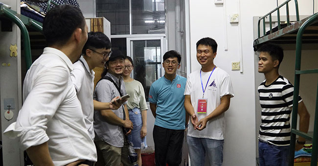 晚上19:20,学院全体教师分批次走访学生宿舍,问候新同学,了解同学们住宿、生活等方面的问题。交谈中,新生们对跨专业组合的宿舍安排,非常满意并充满期待。
