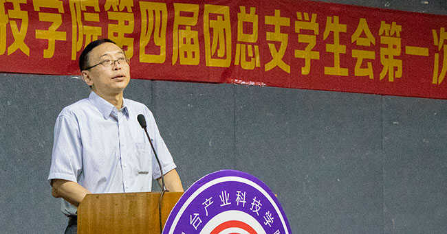 院长陈伟、副书记王玉、学工办主任陈伟鹏老师、辅导员付小全老师、潘雁钦老师以及粤台团学全体成员。本次大会由梅润笑同学主持。