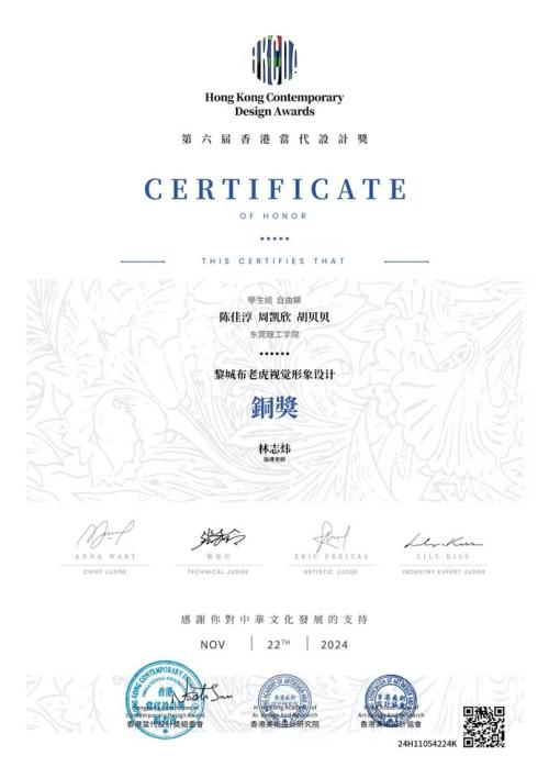 胡贝贝、陈佳淳、周凯欣作品《黎城布老虎视觉形象设计」获得铜奖