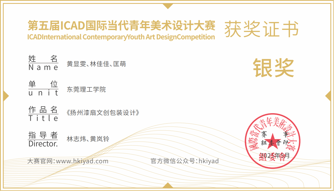 2025第五届ICAD国际当代青年美术设计大赛,近日省赛获奖公布!林志炜老师、黄岚铃老师、黄士严老师、马居正老师、张瑞峰老师分别指导学生,荣获3个银奖、8个铜奖、8个优秀奖,共19个奖项!