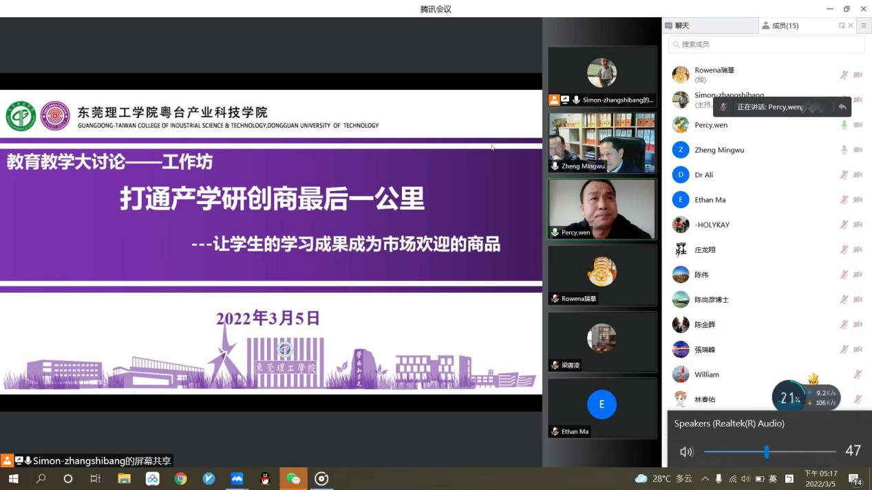 以线上形式召开“打通产学研商最后一公里--让学生的学习成果成为市场欢迎的商品”国际合作创新工作坊。意大利佛罗伦萨大学恩佐教授团队、大愚科技有限公司总经理陈金晖、瑞思奇电子商务有限公司总经理温观发及学院领导出席。会议由院长陈伟主持。